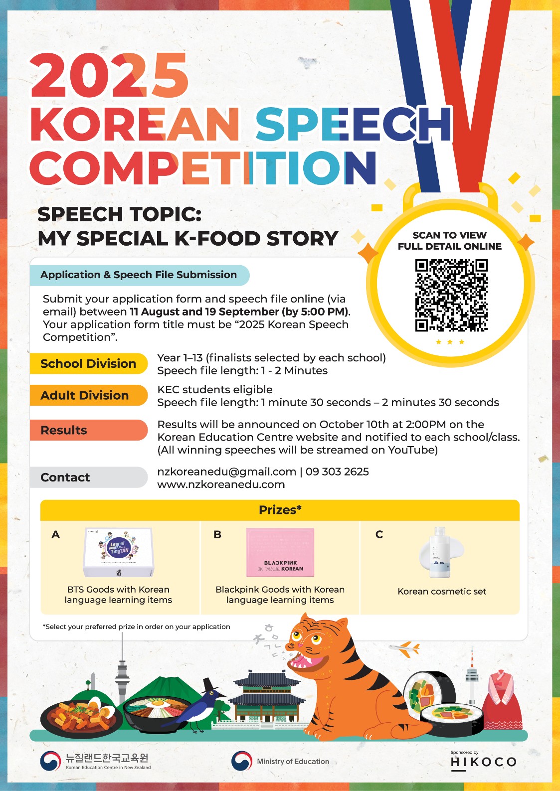 - Results will be announced on October 10th at 2:00 pm on the Korean Education Centre website and notified to each school/ class.