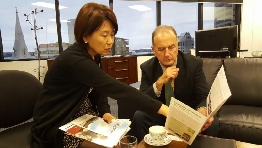 2016. 4. 29(금) 한뉴우정협회 공동회장, 고정미씨와 Richard Lawrence씨는 교육원을 찾아 양 기관의 협업방안에 대해 협의하였다. 한뉴우정협회는 뉴질랜드와 한국 사람들 사이의 우정을 증진시키고 양국 문화에 대한 상호 이해를 깊게하려는 목적으로 2007년 결성되어 정기 모임 외에 사진 및 에세이 공모전을 통해 한-뉴 문화교류에 힘써왔다. 교육원은 각계각층의 다양한 '뉴질랜드 사회에 한국 알리기' 활동을 이어주는 네트워크의 구심점으로 자리매김하게 될 것이다.