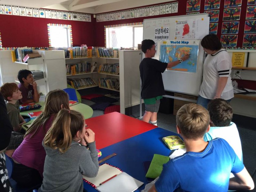 2016.05.17.(화) 한국교민이 많지 않은 왕가레이 지역에서 키위 학생들의 “안녕하세요.”, “감사합니다.” 한국어 인사말이 울려퍼졌다. 원유미 교육원장은 2016년 1학기부터 한국어 수업을 시작한 Matarau학교를 두 번째로 방문하여 한국어 수업을 참관하고 수업 아이디어를 함께 나누었다. 동 학교의 케빈교장은 이태림 교사의 열정으로 아이들이 재미있고 즐겁게 한국어를 배우고 있다고 감사를 표하였고 원유미 원장은 왕가레이 지역에 한국어 보급을 위한 거점학교로 마타라우학교의 사례가 확산되도록 힘쓰겠다 답하였다.