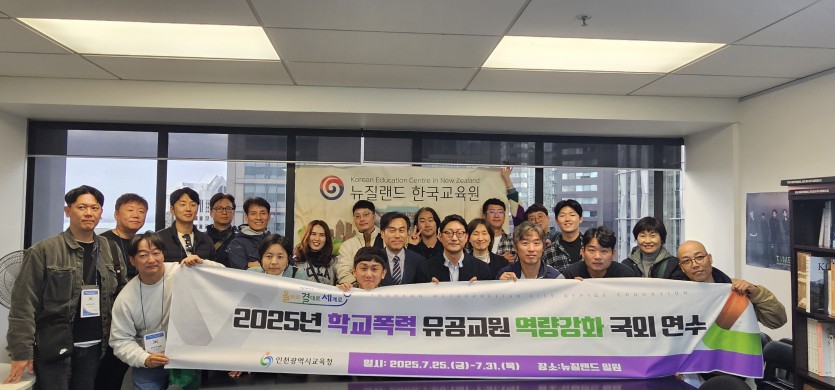 뉴질랜드 한국교육원(원장 정성훈)은 7월 28일(화), 한국의 인천광역시교육청 소속인 2025년 학교폭력 유공 교원 20여 명으로 구성된 연수단이 교육원을 방문했다고 밝혔습니다.