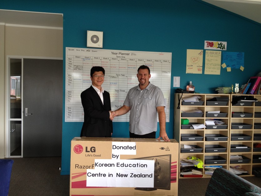 12월 10일(화) 한국교육원 배동인 원장은 Northcote Intermediate School을 방문하여 TV를 기증했다. Northcote Intermediate School 교장(Craig Holt)은 주변 커뮤니티가 경제적 여건이 좋지 않은 상황에서도 한국어 강 좌 개설에 적극적으로 협조하였고, 배동인 원장은 이에 대한 감사를 표하면서 2014년에는 한국어 수업이 보다 더 활성화 되기를 기대한다고 전했다.