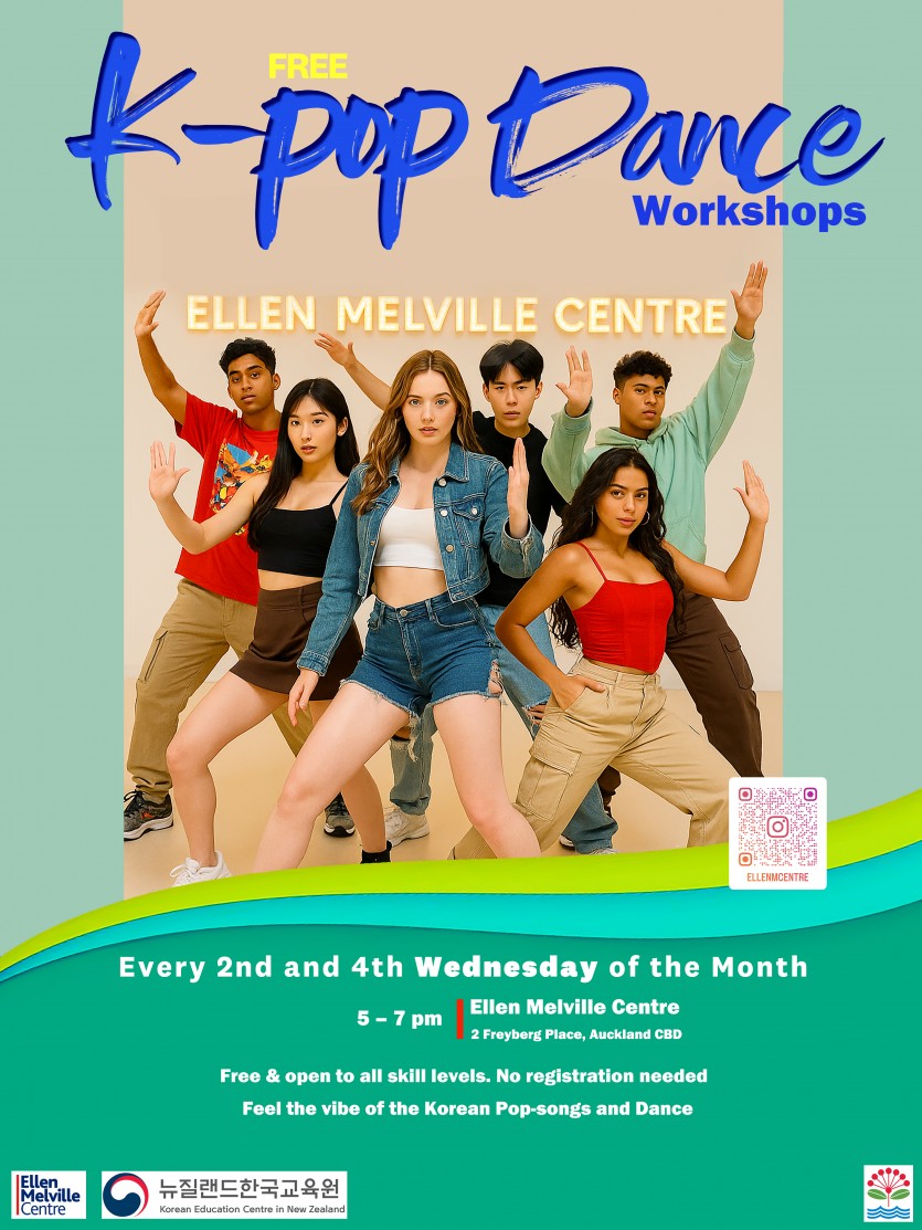 뉴질랜드한국교육원(원장 정성훈)은 5월 14일(수)부터 격주 수요일 5시~7시마다 Ellen Merville Centre에서 Free K-pop Dance Workshops을 운영한다고 밝혔습니다. 이 강좌는 오클랜드시의회(Auckland Council)와 뉴질랜드한국교육원이 함께 공동으로 추진하는 강좌로서, 참가자들은 K-pop 노래와 댄스를 배우면서 한국어도 함께 배울 수 있습니다.