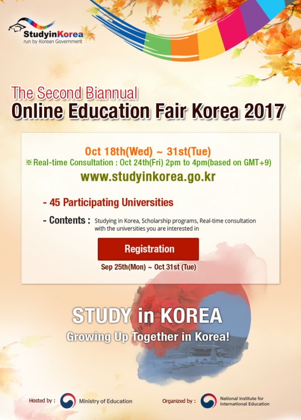 1) It is our pleasure to announce that NIIED will hold [The Second biannual Online Education Fair Korea 2017 for international students.
